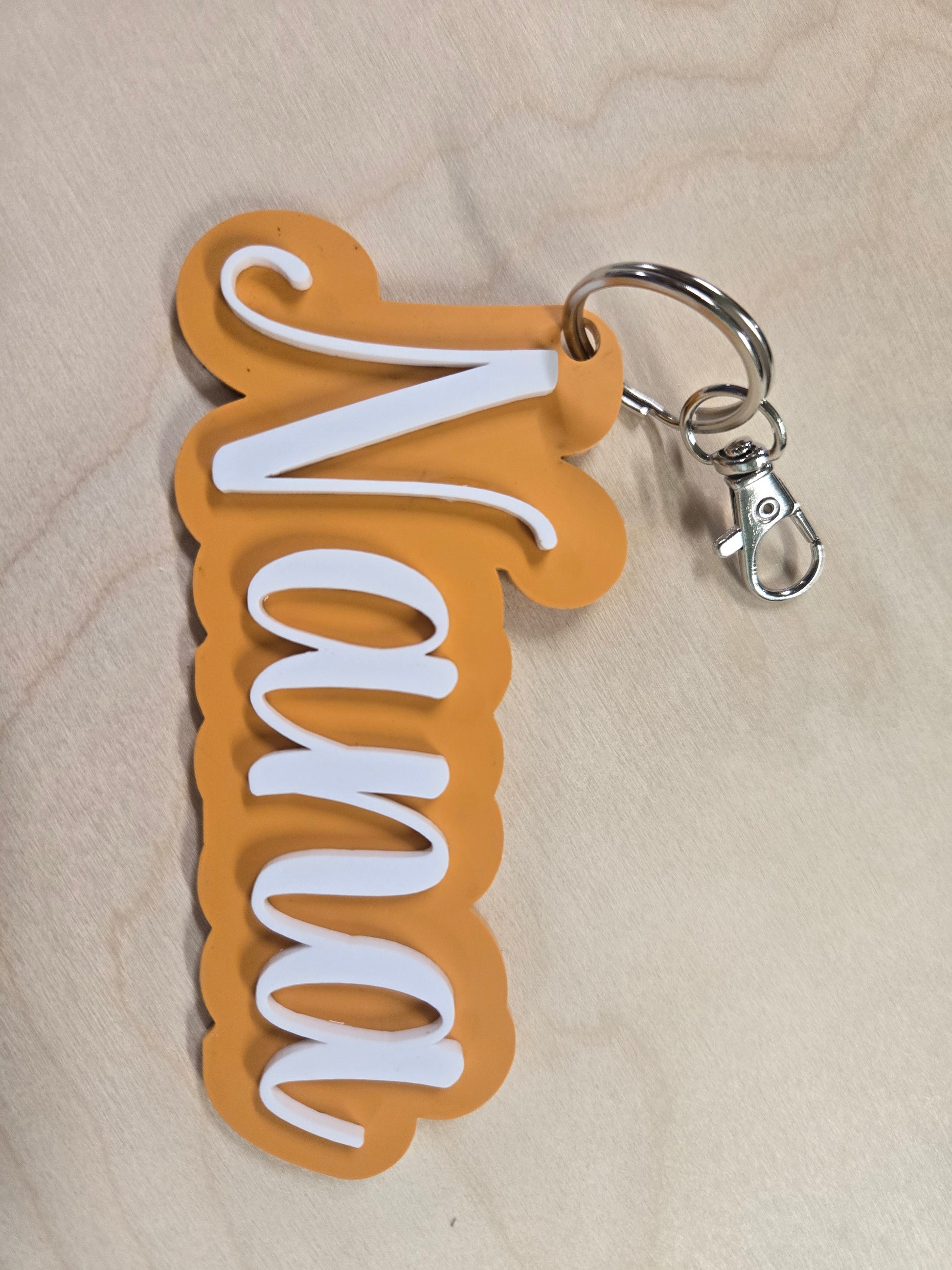 Details: • Made from laser-cut, layered colored acrylic • Approx. 5” long • Includes keyring and backpack clip • Customizable with any name or word • Lightweight, durable & vibrant Perfect for gifts, team sets, party favors, or just to treat yourself!