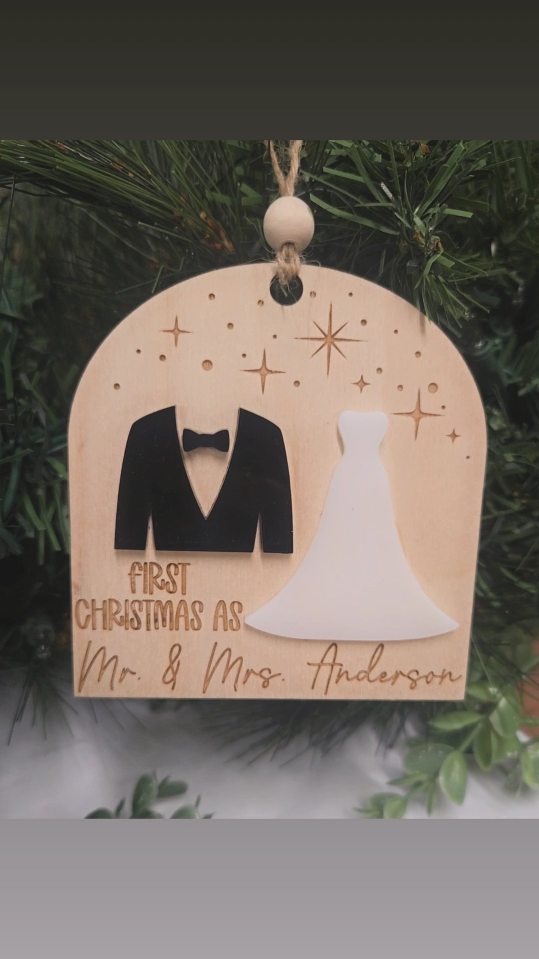 Celebrate love and new beginnings with this beautifully crafted engraved wooden ornament, perfect for newlyweds spending their first Christmas together.